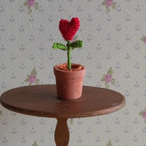 Dollhouse Miniature Crochet Heart in the Pot, 1/12 scale