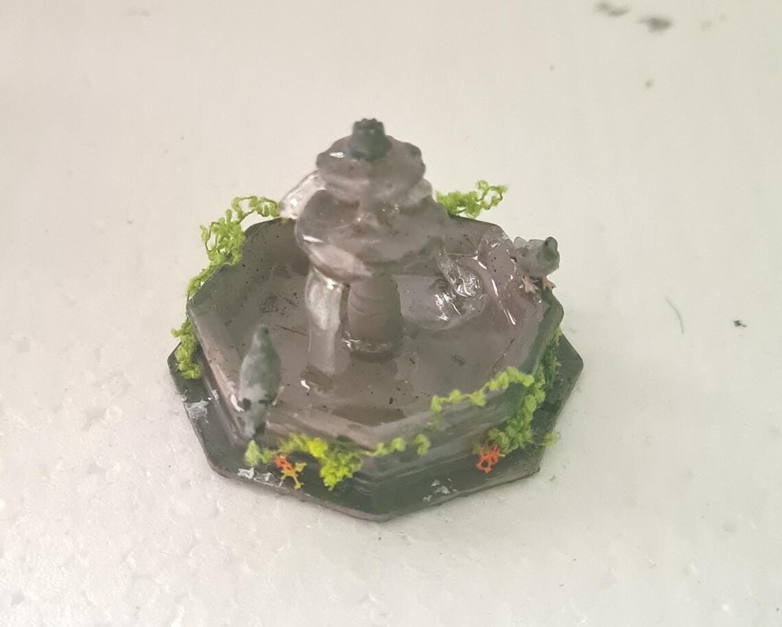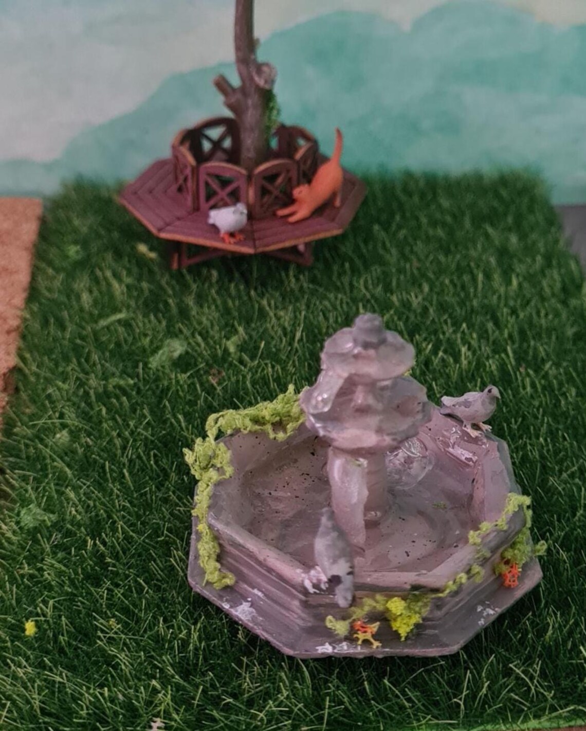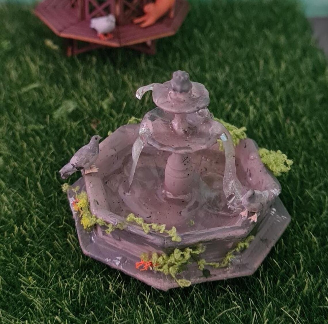 Dollhouse fountain, 1/48 scale with doves