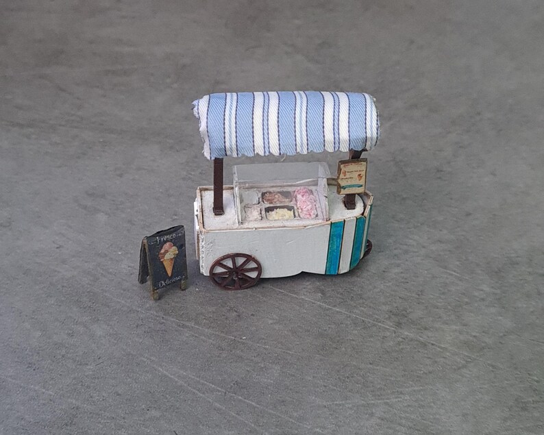 Handmade Ice Cream Cart 1:48 scale, Miniature Dollhouse Accessory
