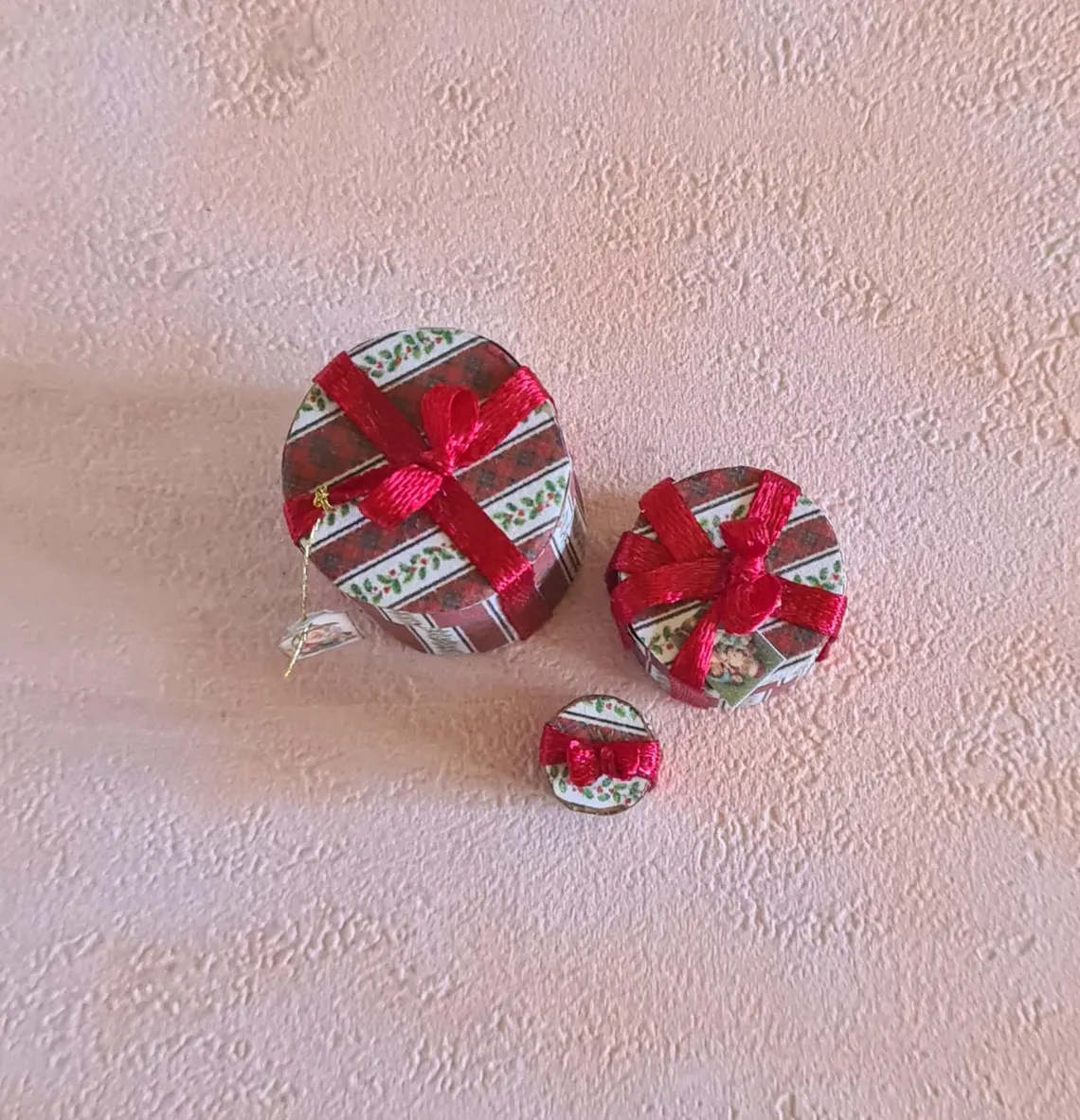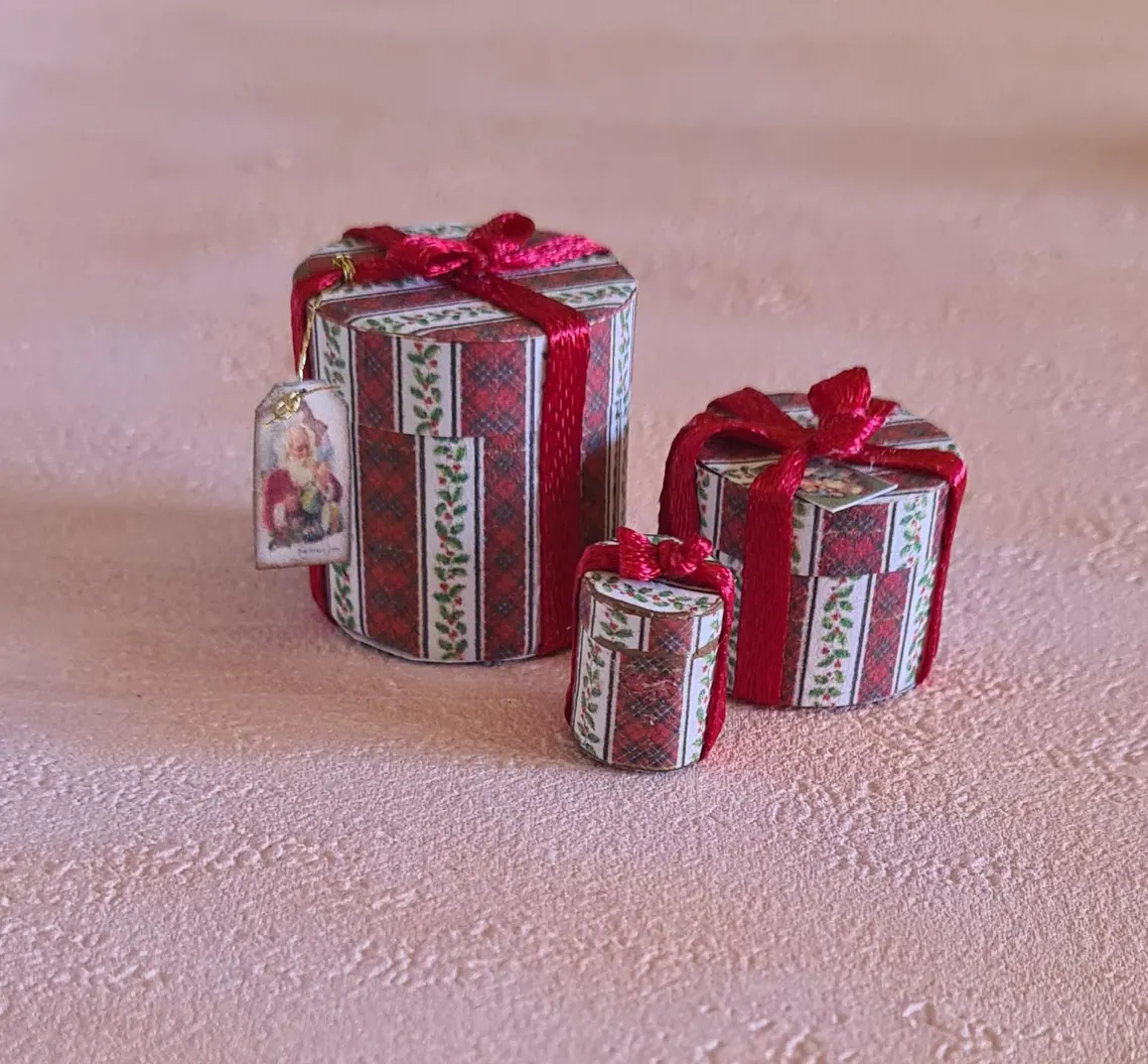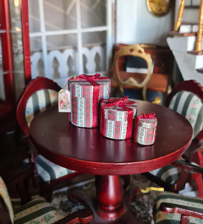 Set of Christmas gift boxes for a 1/12 scale dollhouse