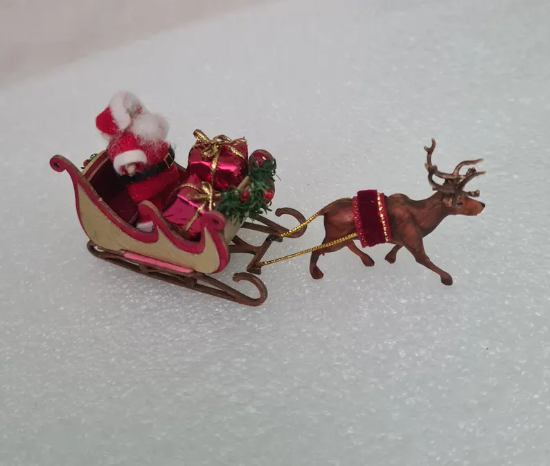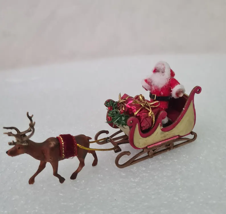 Sleigh size (without reindeer) 3.1 cm (w) x 5.5 cm 8d) x 3.3 cm (h)